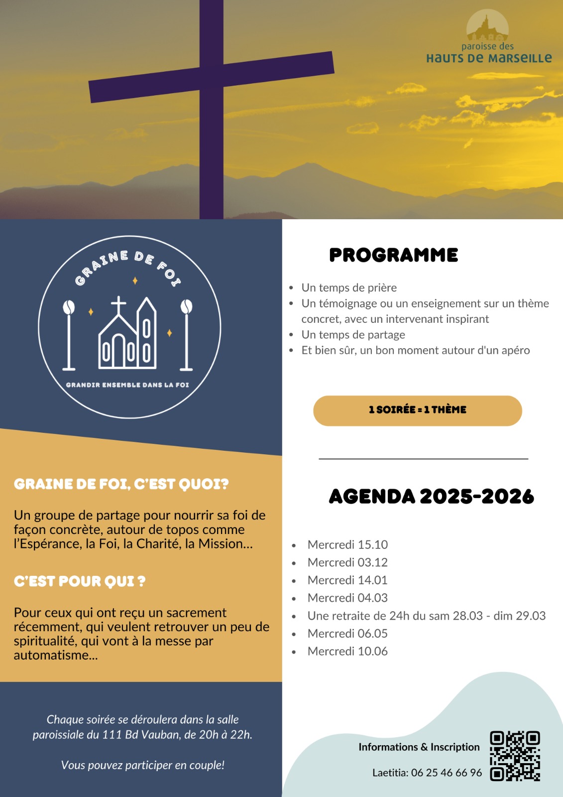 Nous avons le plaisir de vous inviter à notre parcours Graine de foi, une belle opportunité pour toutes les personnes souhaitant approfondir leur foi, que vous soyez néophyte, recommançant ou cathécumène.